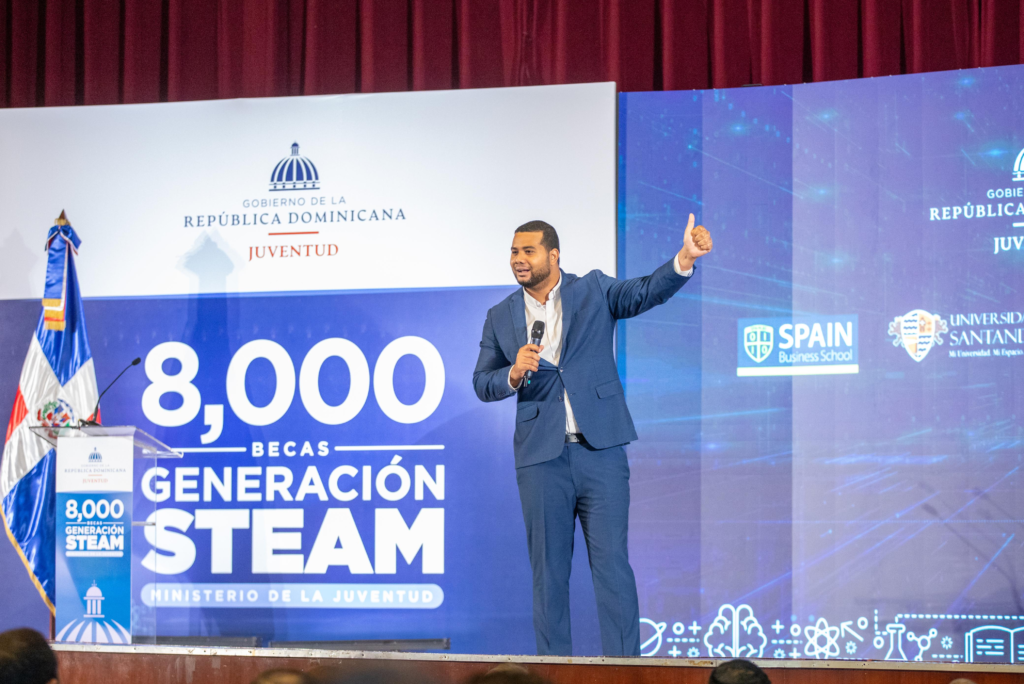 “Hoy entregamos estas becas del programa Generación STEAM, una iniciativa que busca fortalecer la formación de jóvenes dominicanos en áreas estratégicas para el futuro del país”, expresó.